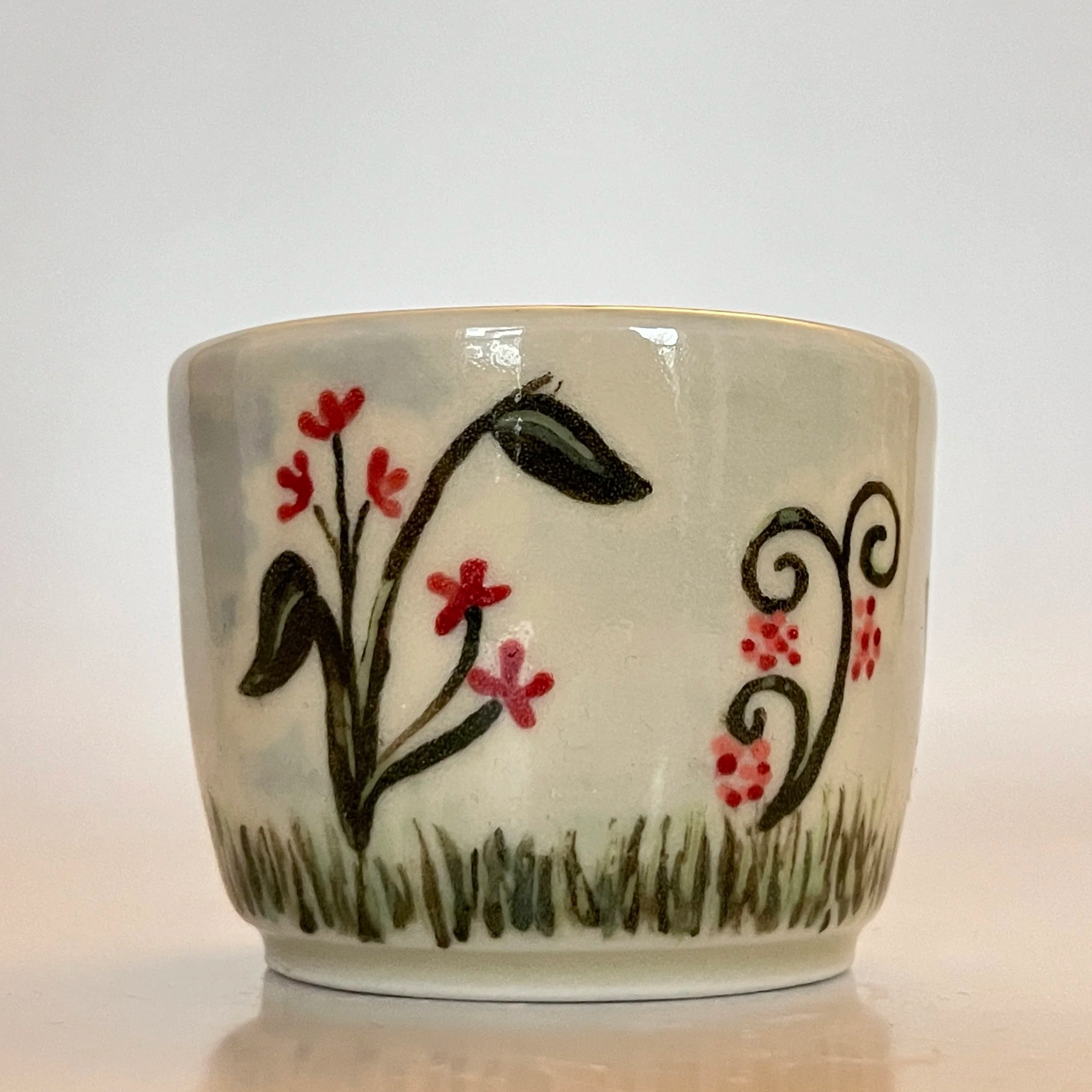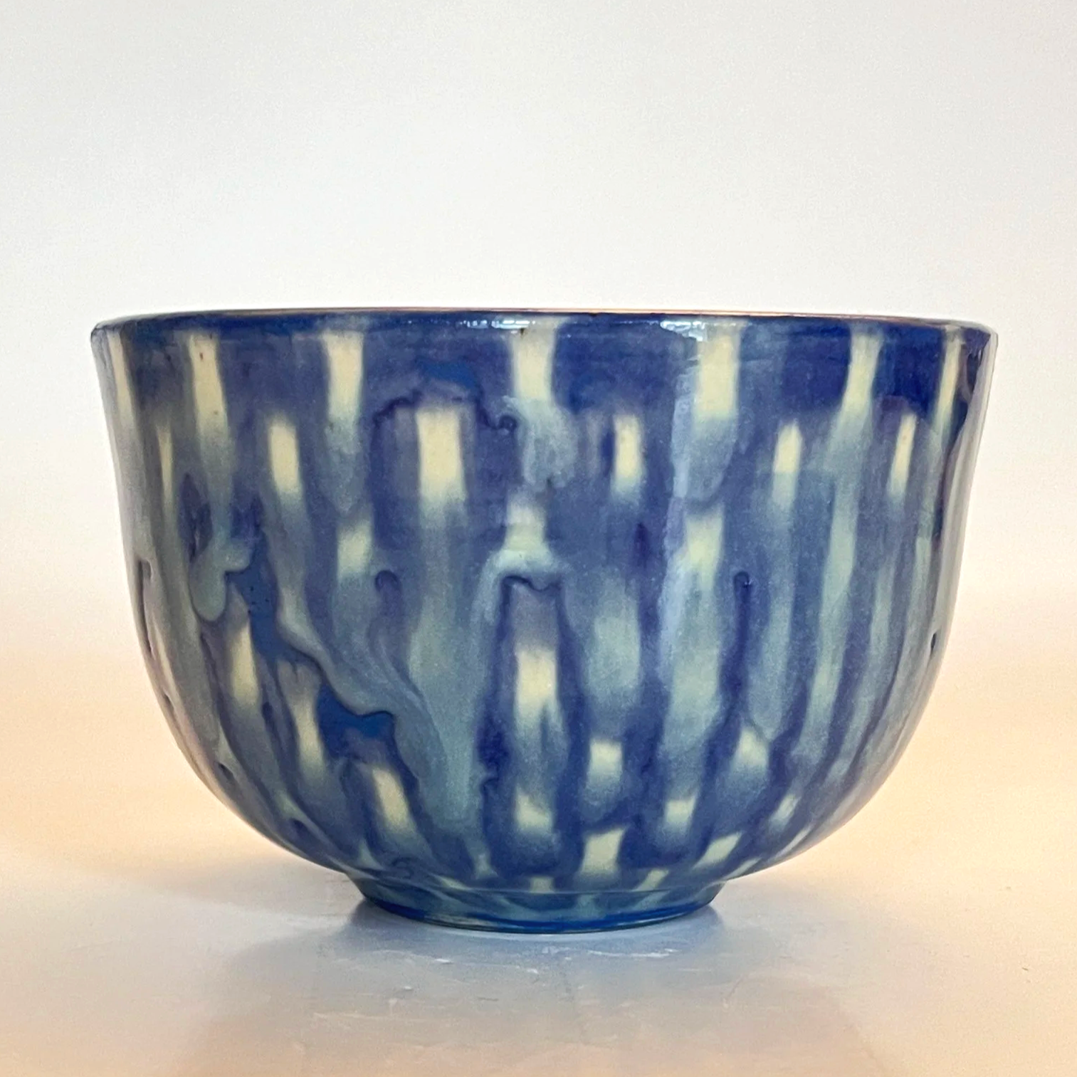 Wheel thrown stoneware, slip trailing, mishima, underglaze painting.