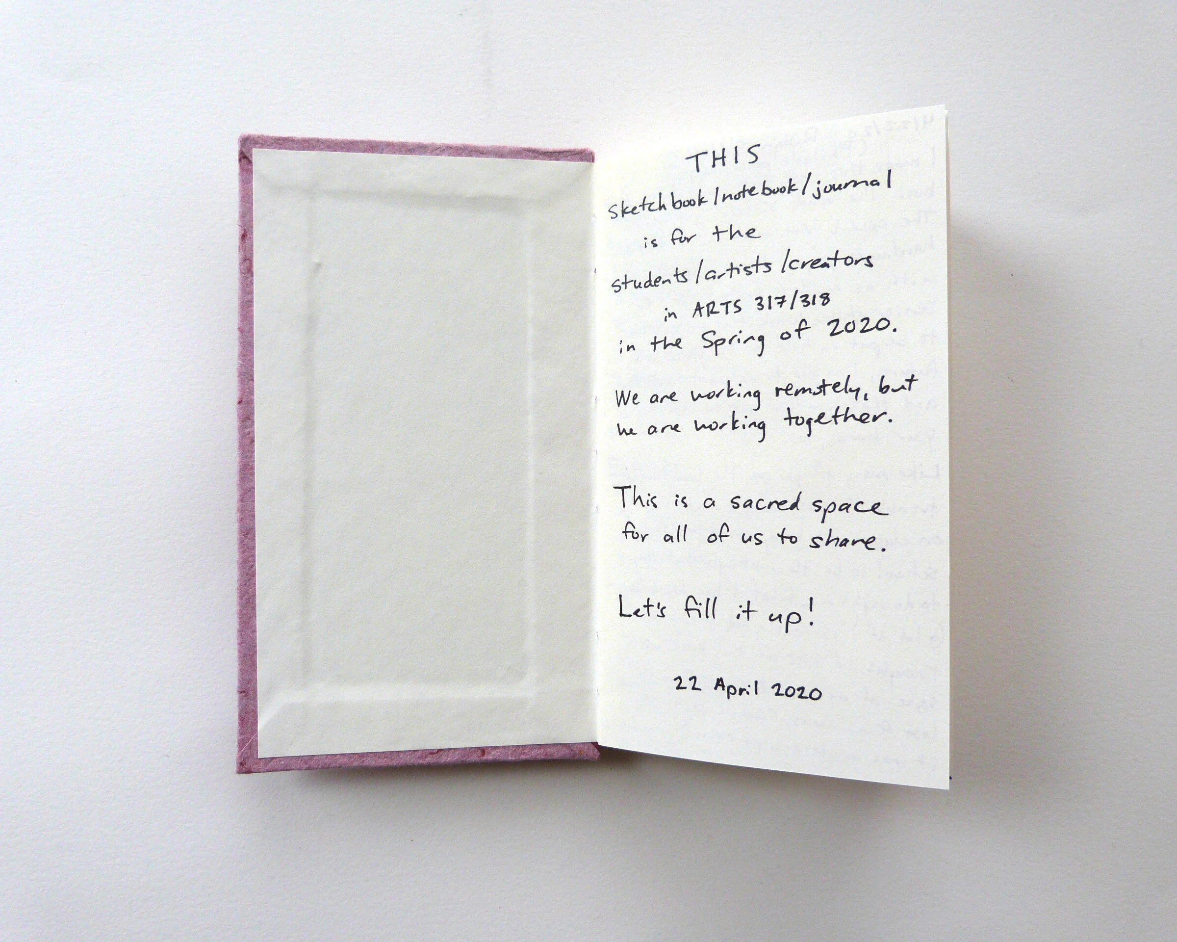 This project grew organically out of the senior seminar group after Wellesley College transitioned to remote learning. Longing for a way to remain connected despite our physical distance, we came to the idea of a journal, mailed from one classmate to the next, in which we can share whatever we are thinking about or working on when we receive it. The journal is bound by hand and the covers are made from handmade paper repurposed from a project that was interrupted by the college's closing.